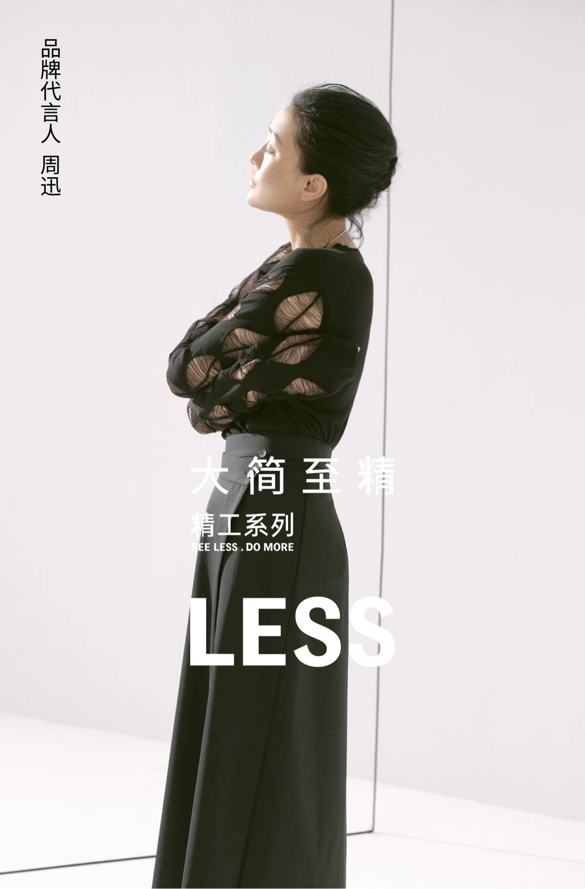 2022年1月7日,设计师女装品牌LESS携手代言人周迅,延续“SEE LESS, DO MORE”的核心理念,围绕“大简至精”这一主题,正式揭开LESS 2022SS 精工系列。